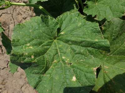 Is there any disease symptoms on the leaves of muskmelon ?
