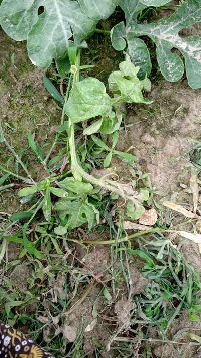 Hi Mujim Sk. It's Gummy Stem Blight of Cucurbits . Click on green link for checking symptoms and taking control measures from Plantix library.