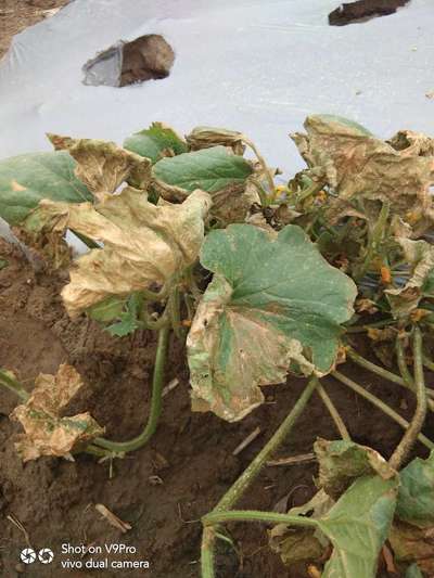 Hi Harkamalpreet Singh. It looks like and severe infestation of Downy Mildew of Cucurbits . Check symptoms by clicking on green link for taking control measures from Plantix library.