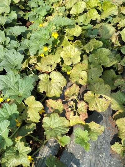 Hi Mangal Gupta . It seems to be like Downy Mildew of Cucurbits . Click on green link for checking symptoms and taking control measures from Plantix library.