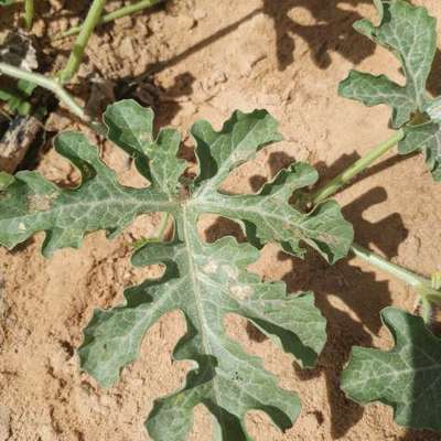 In maskmelon crop leaves are becoming yellowish color and bottom of the loaves round black fungus