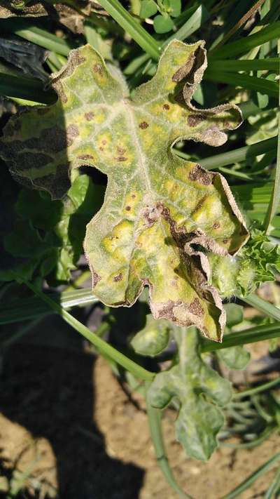 Hi Hamza . It looks like Downy Mildew of Cucurbits . Click on green link for checking symptoms and taking control measures from Plantix library.