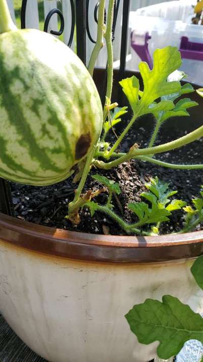Learn more about PlantixBrown spot on watermelon. Not perfectly round.