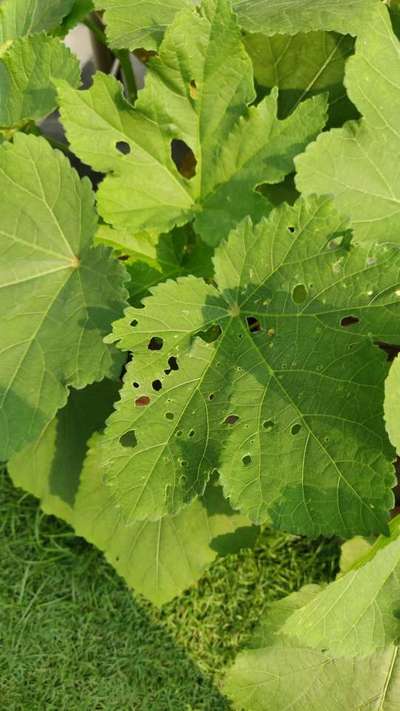 Vishakha Poddar It seems the attack of insects. Do the application of neem oil mixed with water. For more information about this click the below link Leaf Eating Beetle