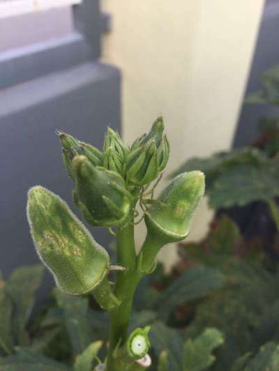 Drying of leaves n okra fruit bending...in okra (Bendi in kannada) suggestions please...