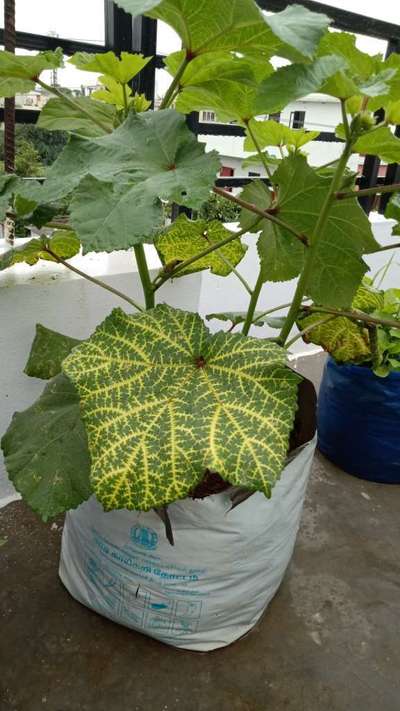 Okra leaf colour changed to pale yellow