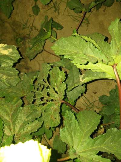 Hi Sus. It's severely effected by Flea Beetles and Leaf Miner Flies . Click on green links for checking symptoms and taking control measures from Plantix library.