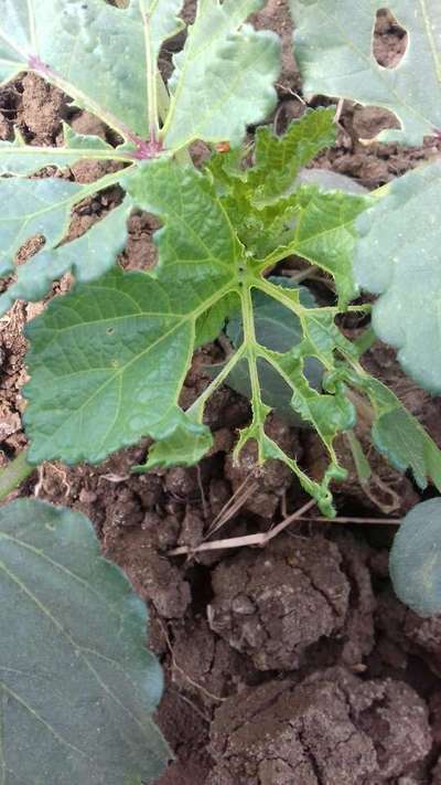 Hi B R as per your images the attack is associated with chewing type of Insects. Have you seen any other insect there?