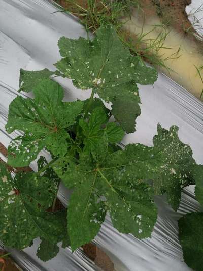 Hi Allu Ramachandra. Your okra crop is severely effected by Flea Beetles . Click on green link for checking symptoms and taking control measures from Plantix library.