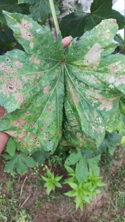 Learn more about PlantixThe colour the leaves were changed and also there were some holes some of the damaged part of the leaves had changed to yellow colour with brown spots on it