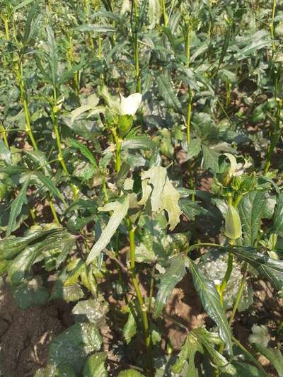 Learn more about PlantixThe leaves are turning reverse and dropping of okra fruits taking place