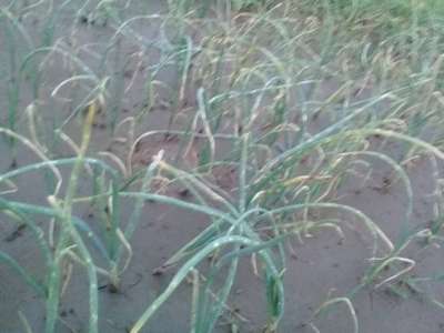 Your plot is affected with Botrytis Leaf Blight and White Rot . Click on above links for detail information.