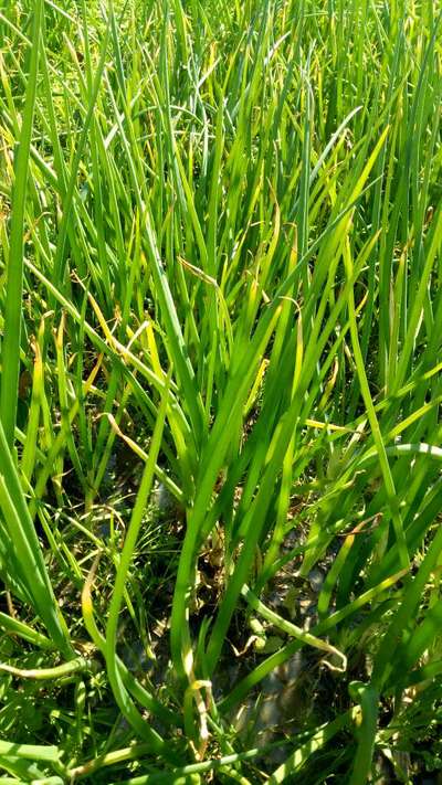 Hi Syed Farman. It's Onion Yellow Dwarf . Click on green link for checking symptoms and taking control measures from Plantix library.