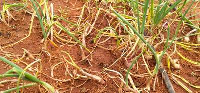 Due to heavy rain the onion crop leafs got changed to yellow colour and the bulb size stopped increasing.....