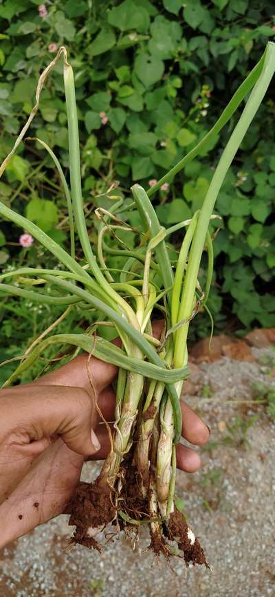 The ends of onion leafs are dried and of leaves and crops looks some lite yellowish colour