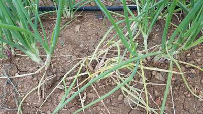 40 days old onion, now become turn like this. What it causes? Any suggested control measures?