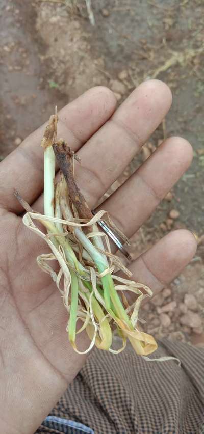 Onion seedlings becoming yellowish form top .. if we remove infected seedlings only upper portion comes.. no roots are present... what may be this disease and how to control it?