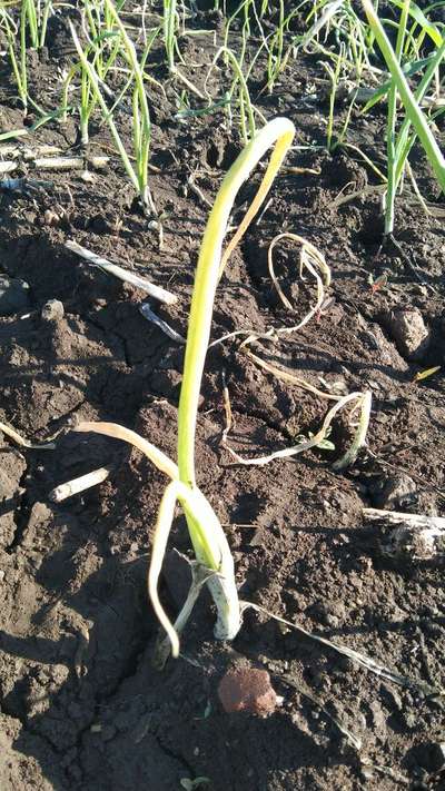 Learn more about PlantixMy onions are transplanted 15 days ago and now Leaves of onion crop yellowing and drying, roots rotting please suggest me strong chemicals to save my onion crop.