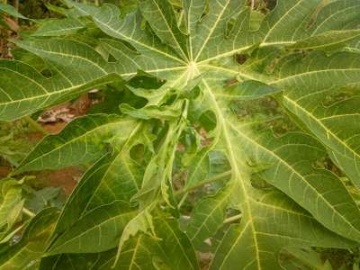 The leaves are yellowish and the papaya is not yealding properly. The papaya is not up to the size also.
