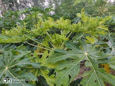 Hi Aakash Garg . It looks like Papaya Mosaic Virus . This disease spreads through vectors like Aphids . Let's try to control vectors. Disease automatically reduced. So, click on green links for checking symptoms and taking control measures.