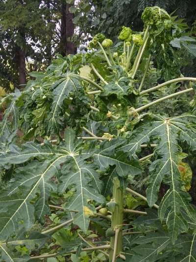 Leaves bent/folded of papaya plant , color of papaya fruit turning unnecessary yellow