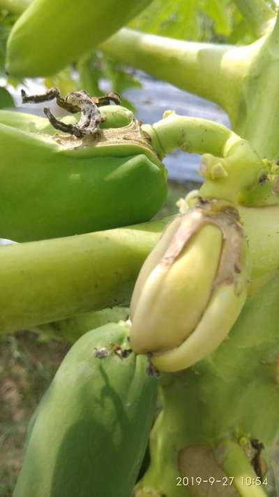 Please help me to diagnose the above problem as this is wide spread in our Papaya Farm. At least 200 plants are seen having this problem at fruit setting stage. Please help Rajbir Sharma