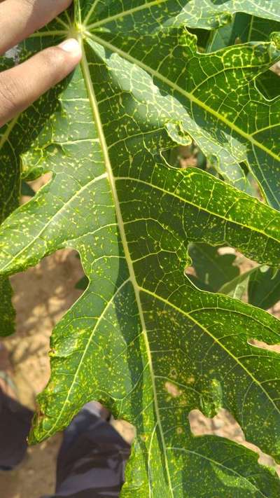 Learn more about PlantixOn every papaya plant one leaf has spots like this.can anyone suggest better bio products to reduce this problem and how to eradicate it