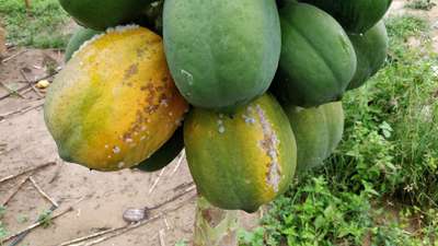 Learn more about PlantixThe mature fruit has Papain like matter on it without any damage to the outer layer and also the fruits are ripening from the peduncle without formation of stripes. Pls suggest control measures.
