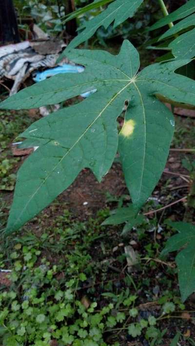 Learn more about PlantixIrregular yellow shaped spots on the papaya leaves, very distinctly yellow .what is the problem