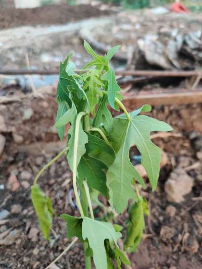 Young papaya leaves are curling