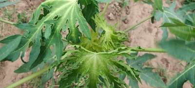 Hi Uday Kumar. It looks like Papaya Mosaic Virus . This disease transmits through vectors like Whiteflies . So, control vectors to control this disease. Click on green links for checking symptoms and taking control measures from Plantix library.