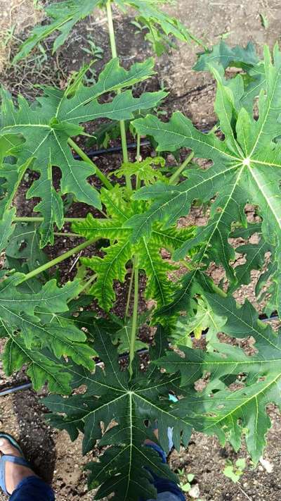 Irregular yellow shaped spots on the papaya leaves, very distinctly yellow .what is the problem