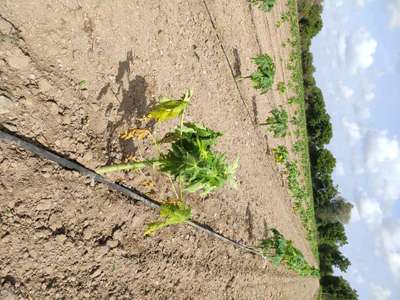 Learn more about PlantixAge of papaya plants is 3 month ...and it's about to die.. It's root is full of sickness ,i saw a very small white creatures at it's root..so that leaves are change into yellow..