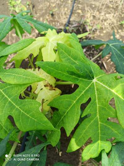 Uper newly leave have white powder and then they got curly and look like damaged. It also affecting growth of plant. It is red lady 786 Taiwan varity. Now here minimum temperature is 8 c° and maximum temp 21c°