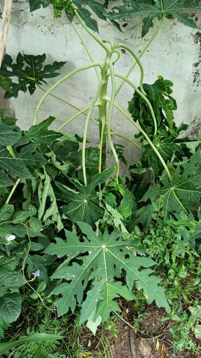 I grow papaya in my field and as shown in the image spots are appearing on the plant. Can any one give a solution for it.