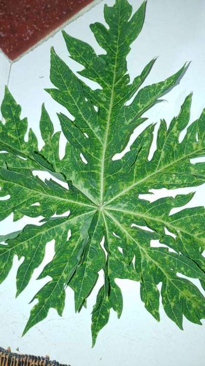 Hi Satya Giri . It looks like Papaya Mosaic Virus . This disease transmits through vectors like Whiteflies . Control vectors to control this disease. Click on green links for checking symptoms and taking control measures from Plantix library.