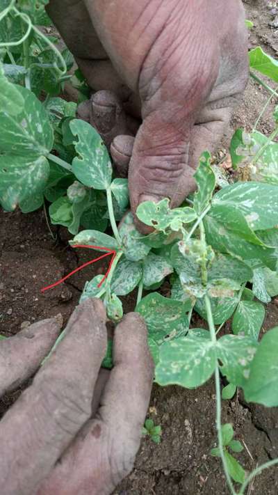 Hi Aditya Kaushik. Your pea plant is effected by Leaf Miner Flies , Bean Leaf Beetle and Pea Pod Borer . Click on green links for checking symptoms and taking control measures from Plantix library. Also use fertilizer calculater, crop Advisory, see all tasks and weather report sections available here on home page of Plantix to increase your crop productivity.
