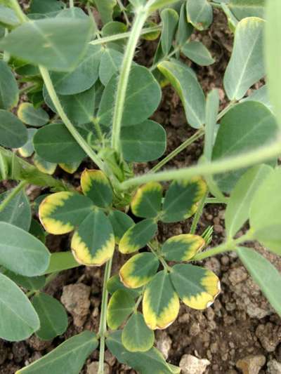 Hi Kaneriya Sagar . Your peanut plants are effected by initial stage of Potassium Deficiency . Let's click on green link for checking symptoms and taking control measures.