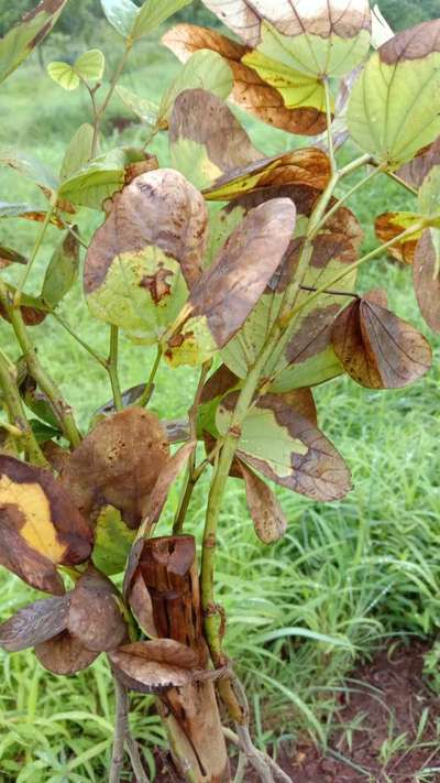 Hi Saikiran Prabhu. This might be due to two reasons: 1. It's due to Potassium Deficiency . Click on green link for checking symptoms and taking control measures from Plantix library. 2. It's also due to overwatering and direct watering on plant - if so, avoid it. or with heavy rains effect. Don't allow to stagnate water at the base. Apply good amount of Farm Yard manure or Vermicompost once in 6 months to get good growth of your plant.