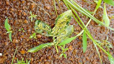 Holes on the leaf, colour change of leaf, heavy gross