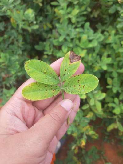 Ramya tikka Disease ( early leaf spot) 🥜 of peanut. Spray Hexaconazole 5%ec 25ml /10 liters of water.