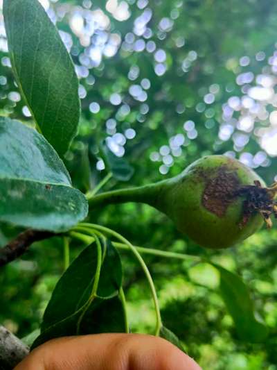 Although its leaves are in good candition..but i found red and black spots on pear fruit..