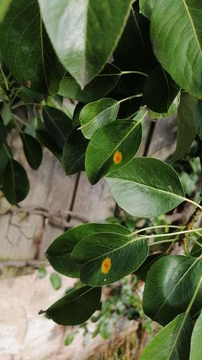 Garden European Pear Rust Please check this link for more details and preventive measures.
