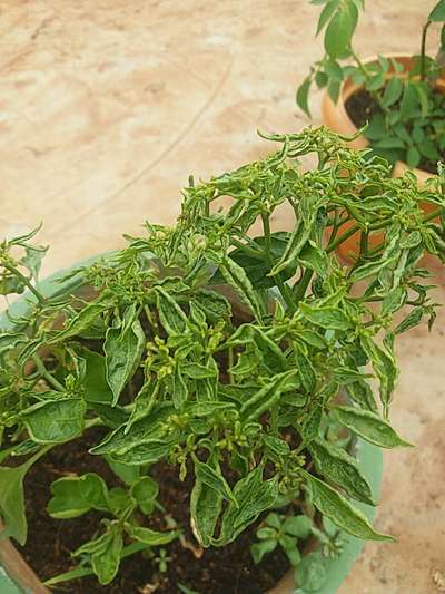It is a green chilli plant in my pot the leaves are going like this as u can see kindly plz tell me wht to do to give a healthy way for this plant