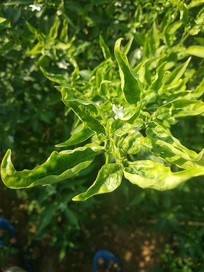 Chilli plant. Upper surface dark blue mixed brown . Lower surface green color