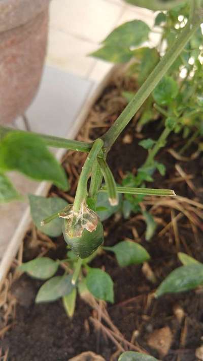 Hi Jwalantjoshi07 . It looks like Chilli Thrips and Powdery Mildew of Pepper . Click on green link for knowing symptoms and taking control measures. It seems you are doing - overwatering, waterlogging and direct watering on plant - Avoid it. Make a hole below the pot to drain out excessive water from the pot. Thanks for visiting.