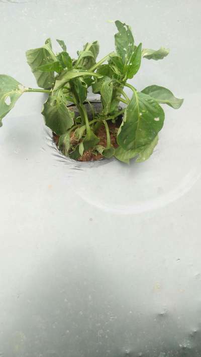 As there is flea beetle , damage , spray any systemic insecticide chloropyrifos 2ml/litre of water along with carbendizim 2gm/litre of water
