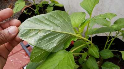 The plant is spinach,(called cheera in Malayalam) one month old. White spots appears below the leaves. Can't find any bugs or fungus. The topside of the leaf appears blanched, i.e. lacking the green colour. Then the affected part dries off.