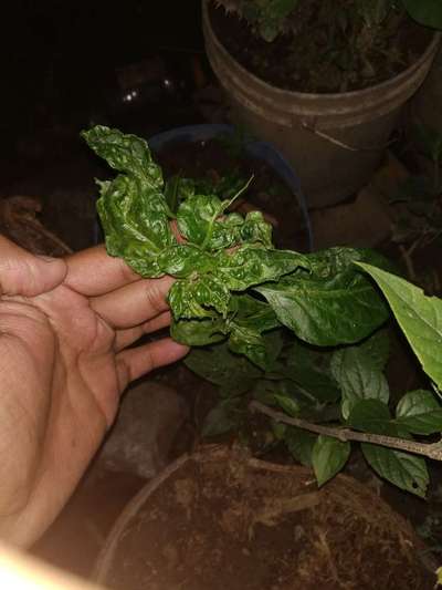 Hi Razesh Neupane , this is affected by leaf curl viral disease . There is no control measures for the viral disease . Pluck the plant and burn it . Thank you