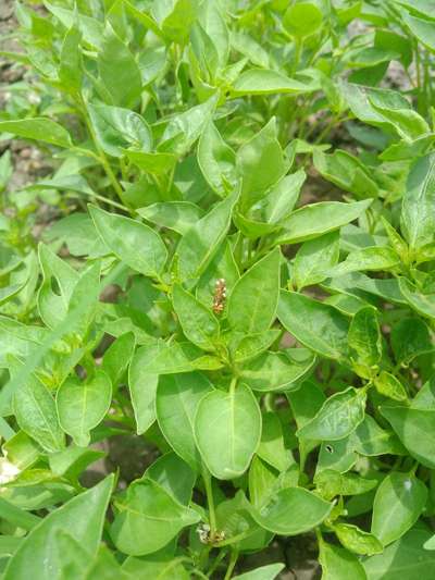 This insect is noticed sparingly in the chilli nursery. Seedlings are of 32 days old and the leaves appear stressed at some places. Seed was treated with Bauer's Gouche before sowing. Groot 28-28-0 about a week ago.
